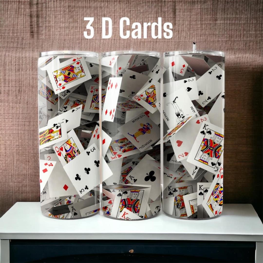 Don't get shuffled up in your daily routine - take your hydration to the next level with this 20oz 3D Playing Cards Tumbler! This stainless steel skinny keeps your drinks colder, longer, while the eye-catching playing card design adds a touch of creativity to your day. Let the games begin!