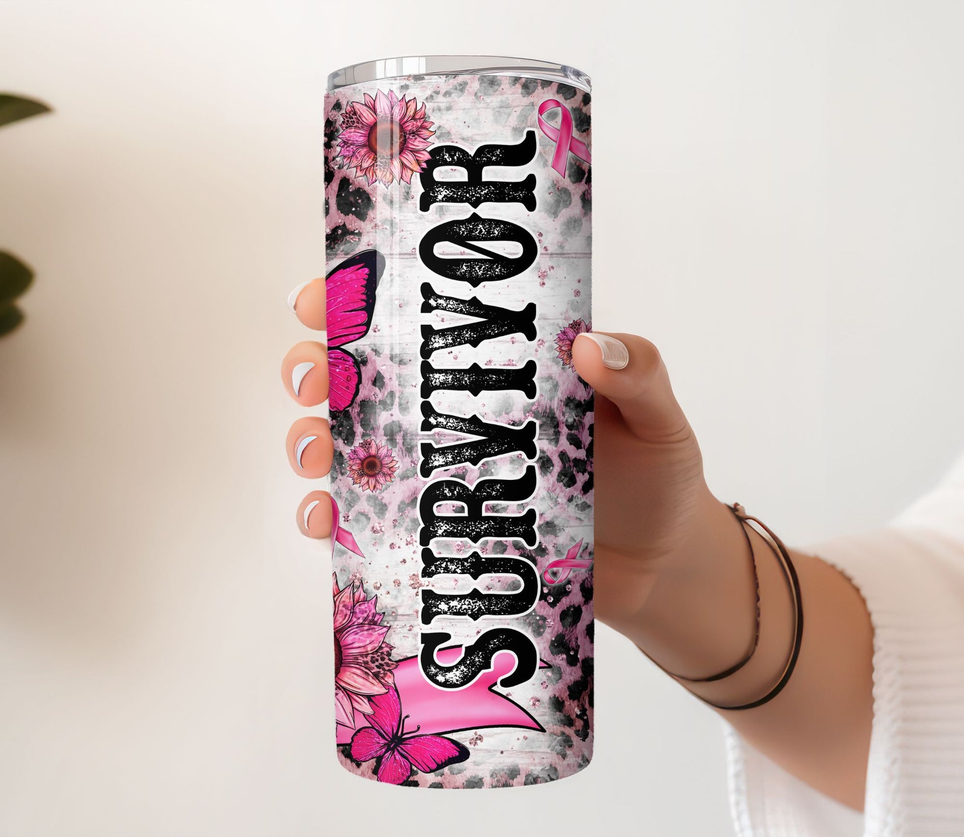 Stay hydrated in style with our Breast Cancer Survivor Tumbler. This tumbler not only keeps your drinks at the perfect temperature, but also proudly displays your status as a survivor. Perfect for daily use or to give as a thoughtful gift to a fellow survivor. Made with durable materials for long-lasting use.