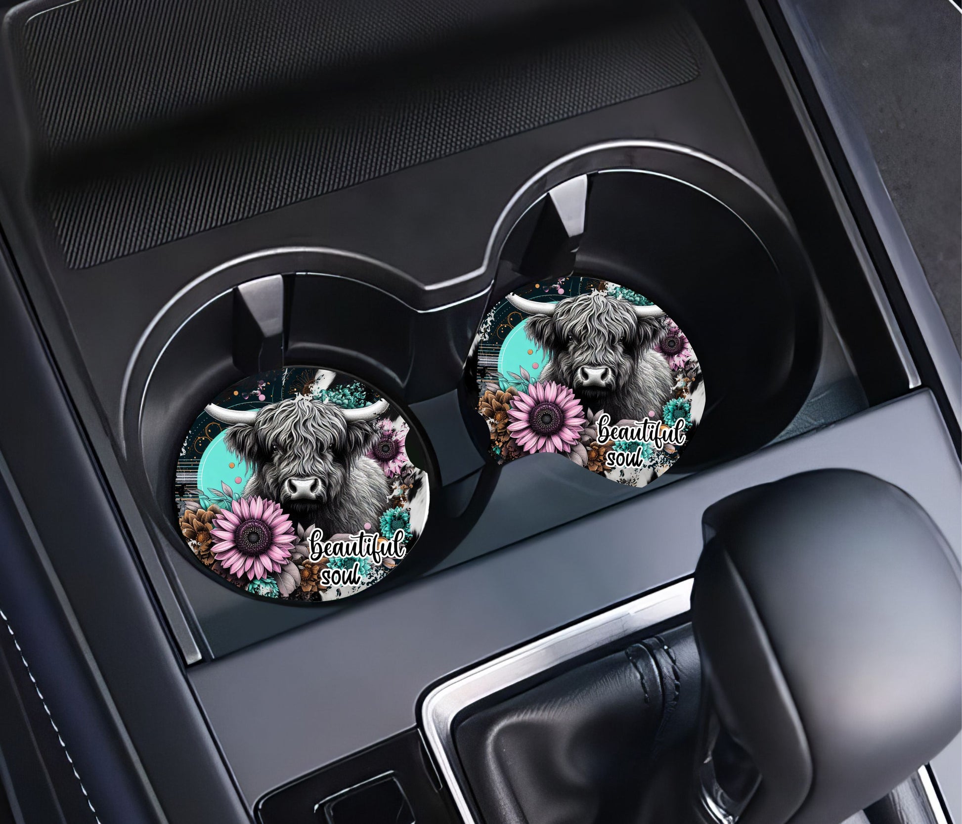 Protect your car's cup holders with the Highland Cow Car Coaster. Made of durable ceramic, this coaster features a beautiful Highland Cow design that adds personality to your vehicle. Keep your cup holders clean and stylish with this functional and charming accessory.