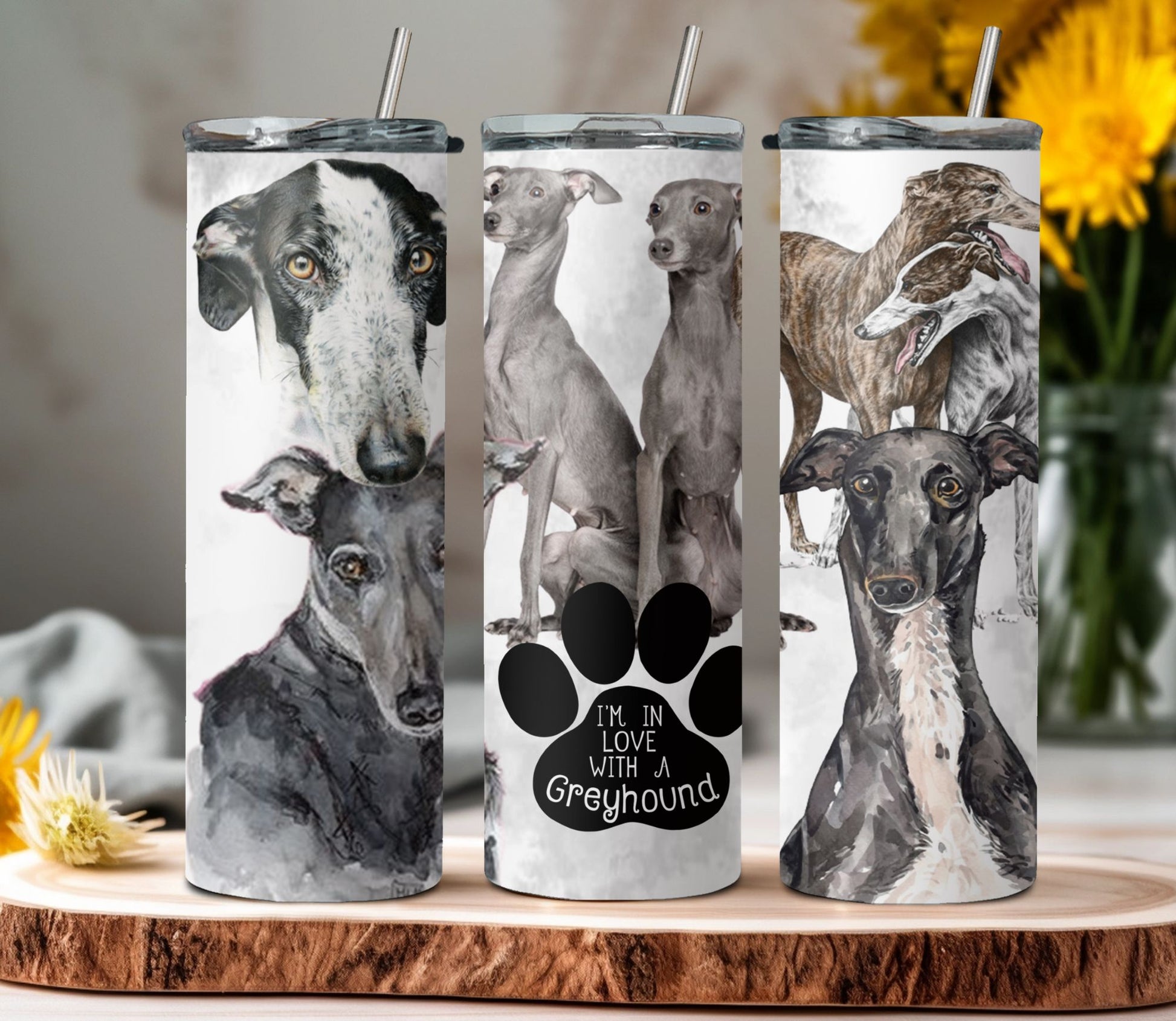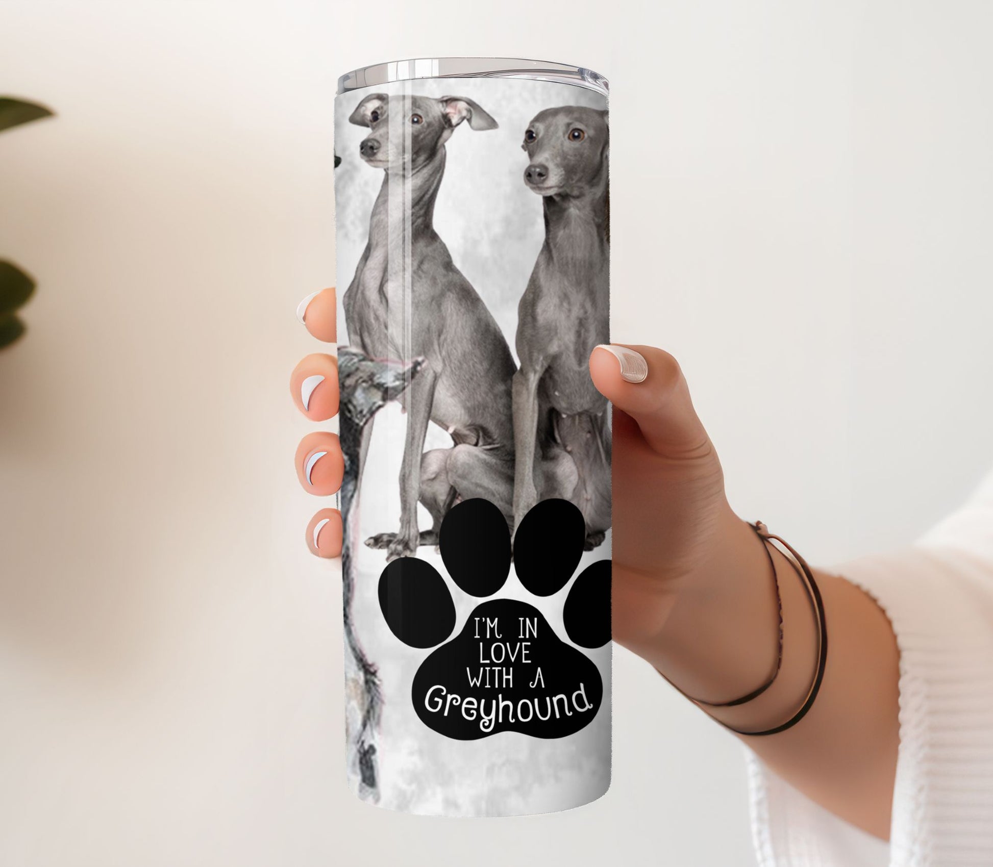 Fall in love with your morning routine with our "I'm in Love with a Greyhound" tumbler! Made with high-quality materials, this tumbler features a charming greyhound design that will make your heart skip a beat. Keep your drinks hot or cold while showing off your love for these majestic creatures. Start your day feeling energized and inspired with our tumbler.