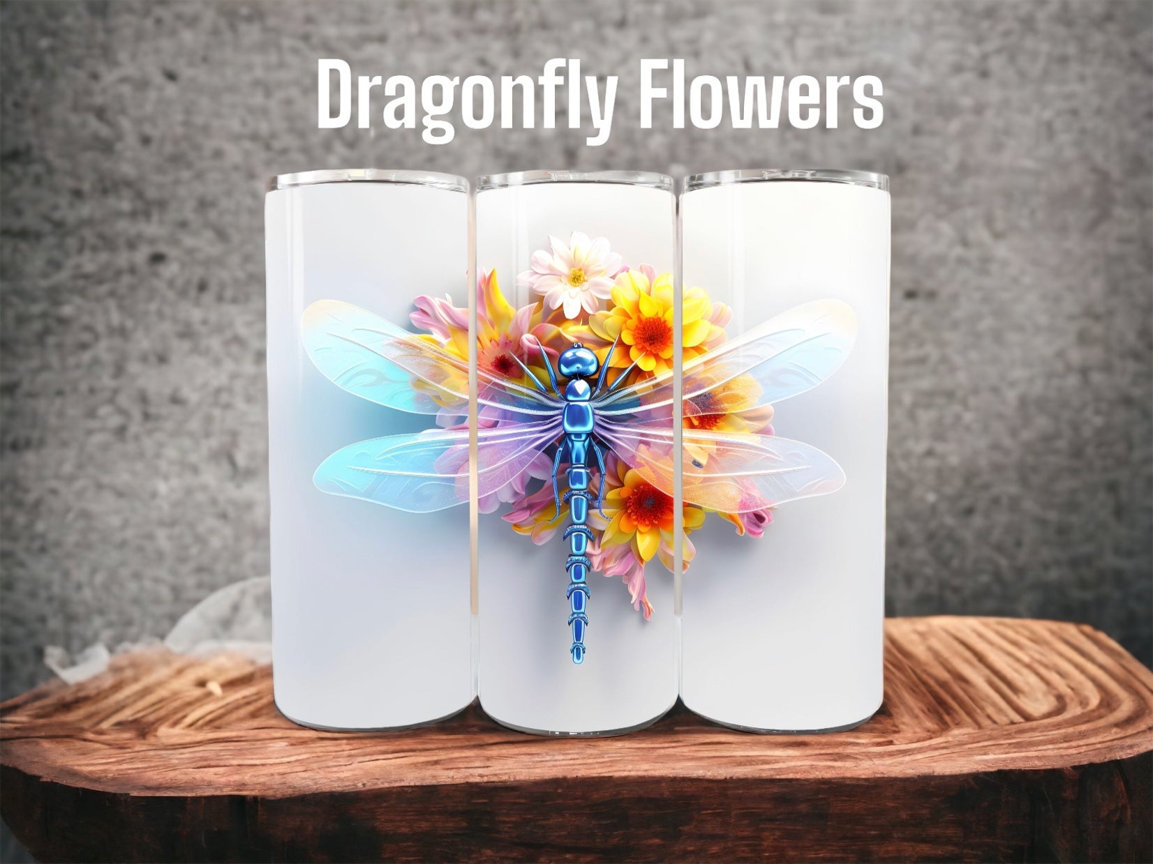 Grab a cool drink, and a hot look with the Dragonfly Flowers tumbler! Perfect for a picnic, this 20 oz stainless steel beauty features mesmerizing dragonflies and colorful flowers to show off your style while keeping your drinks cool as a cucumber!😎