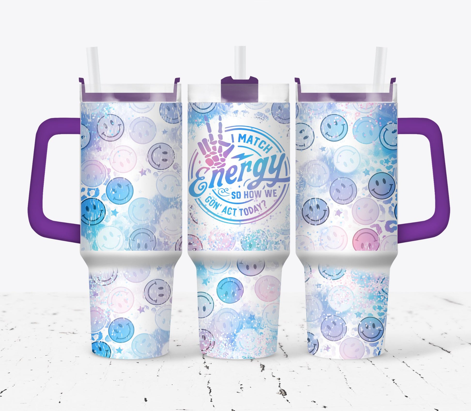 This tumbler says “I Match Energy So How We Goin Act Today.”