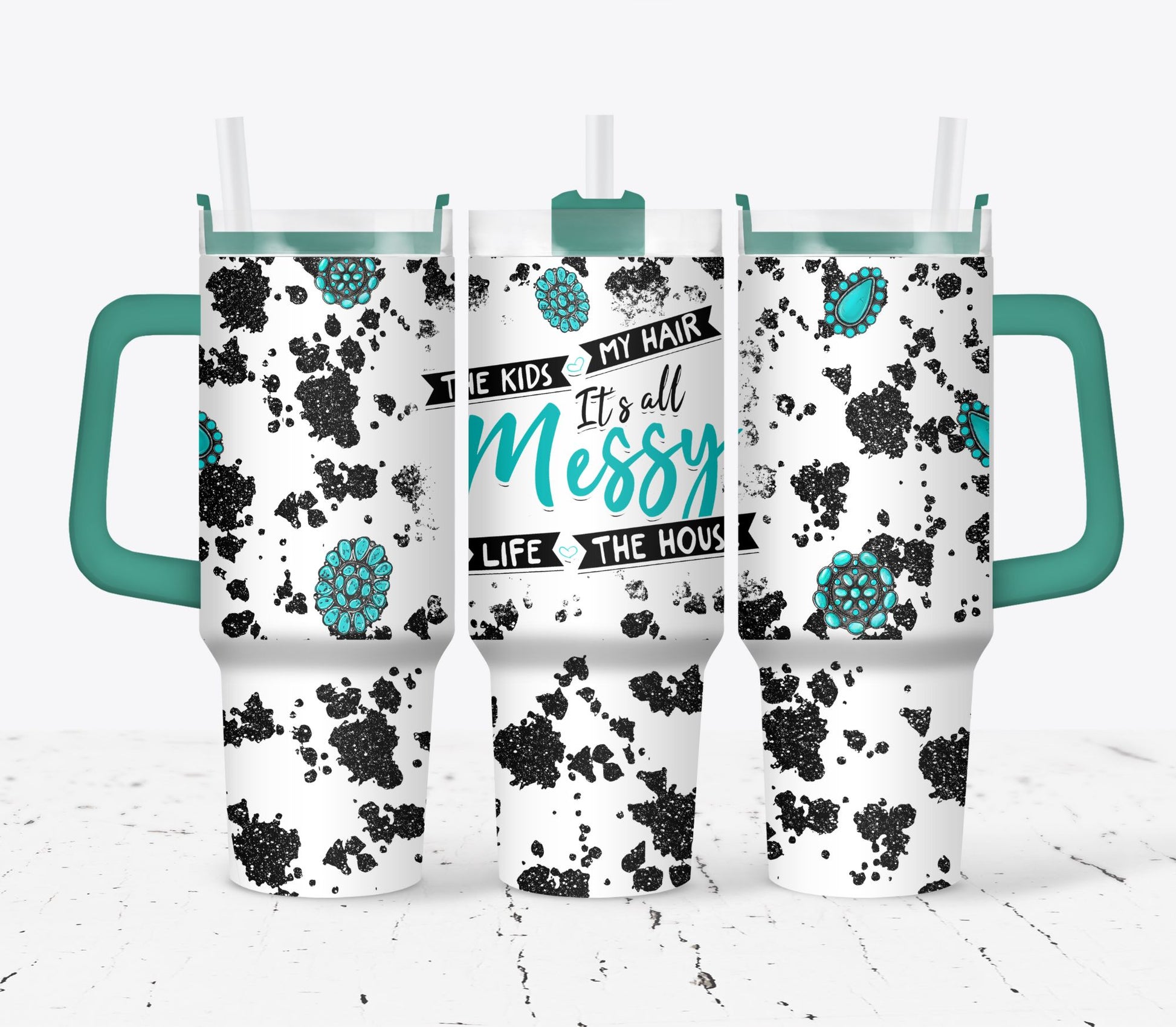 "Embrace the chaos with It's all Messy - the perfect reflection of life with kids, juggling household responsibilities, and messy hair. Say goodbye to perfection and embrace the fun, playful messiness of it all!"