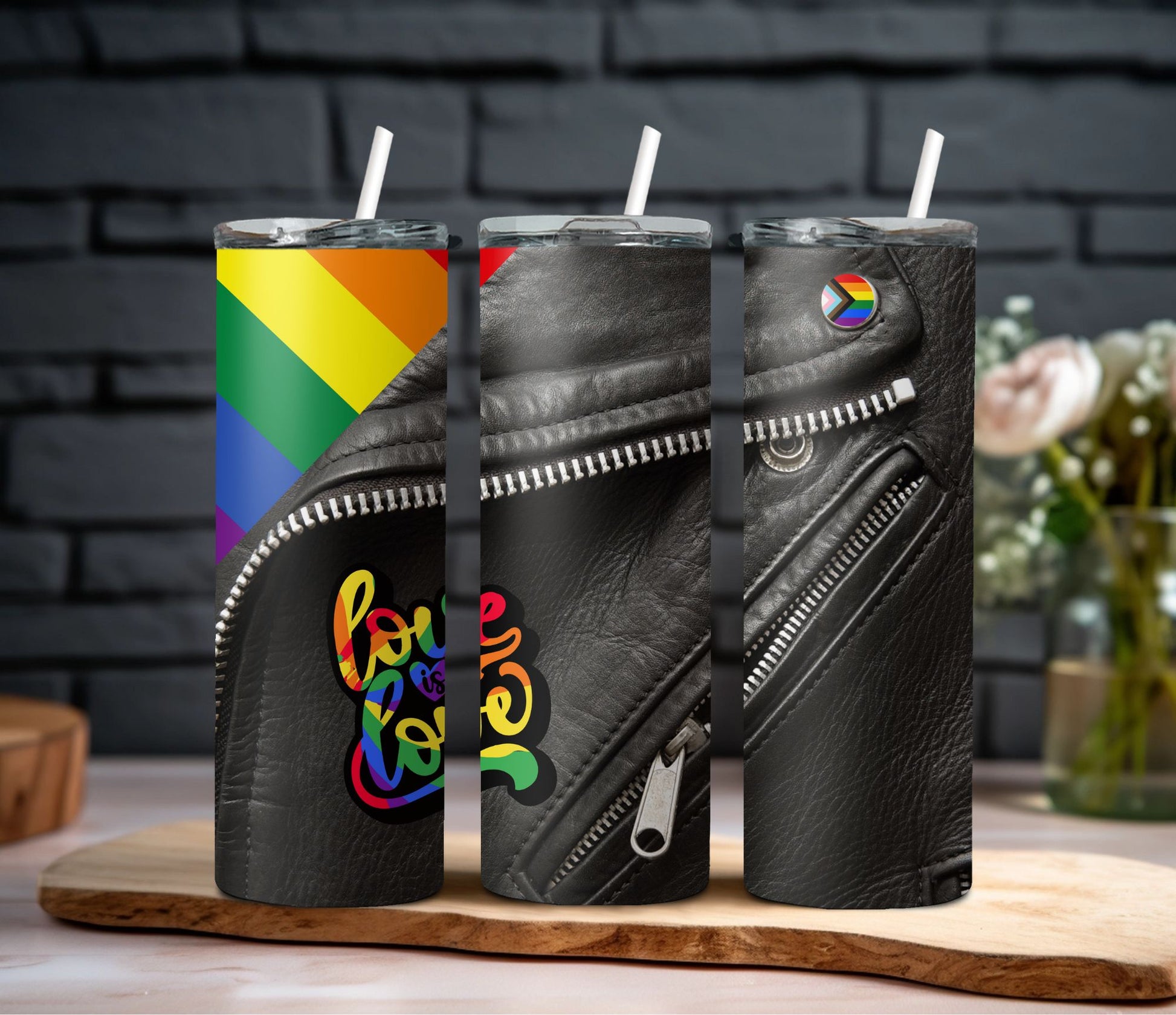 Show off your love for love (and leather jackets) with our Love is Love Leather Jacket Tumbler. Made with high-quality materials, this tumbler is perfect for keeping your drinks hot or cold on-the-go. Spread love and style with every sip!