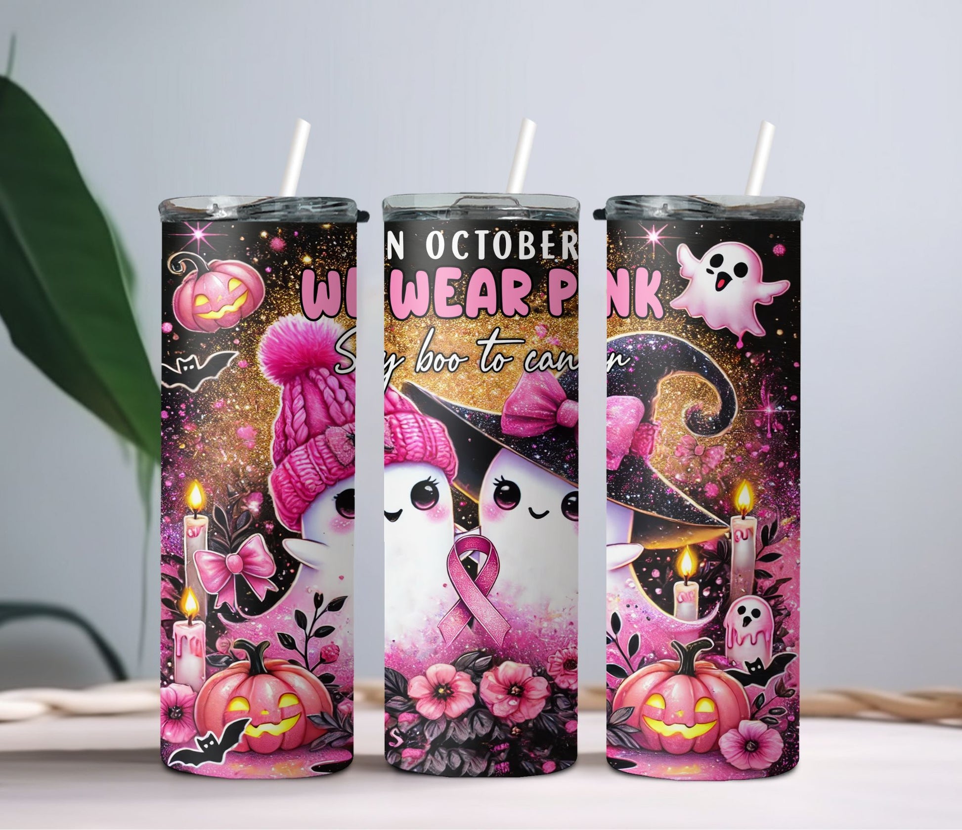 Stay hydrated and show your support for breast cancer awareness with our October We Wear Pink tumbler. Designed for the month of October, this tumbler is perfect for any on-the-go lifestyle. Keep your drinks at the perfect temperature and spread awareness with each sip.