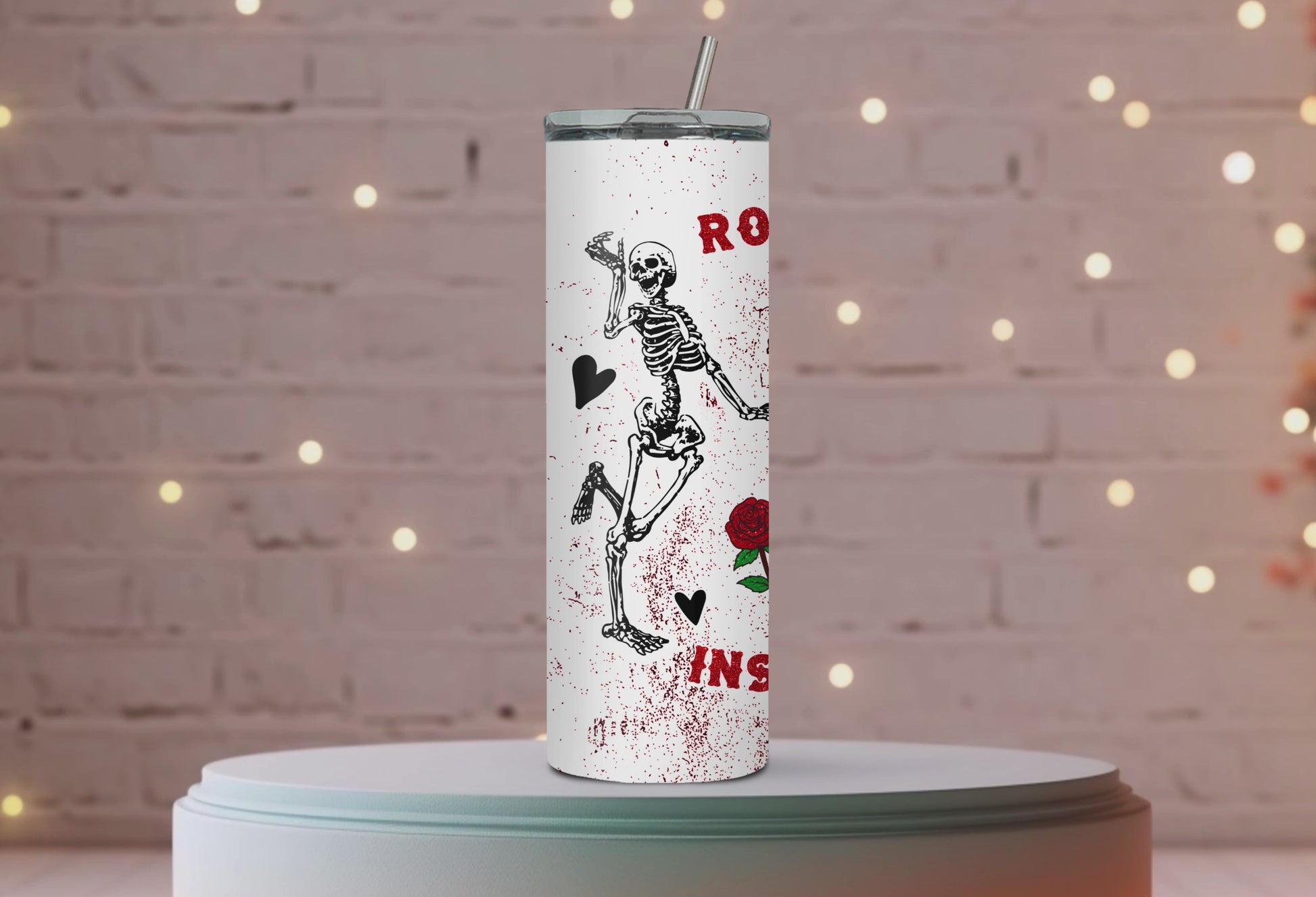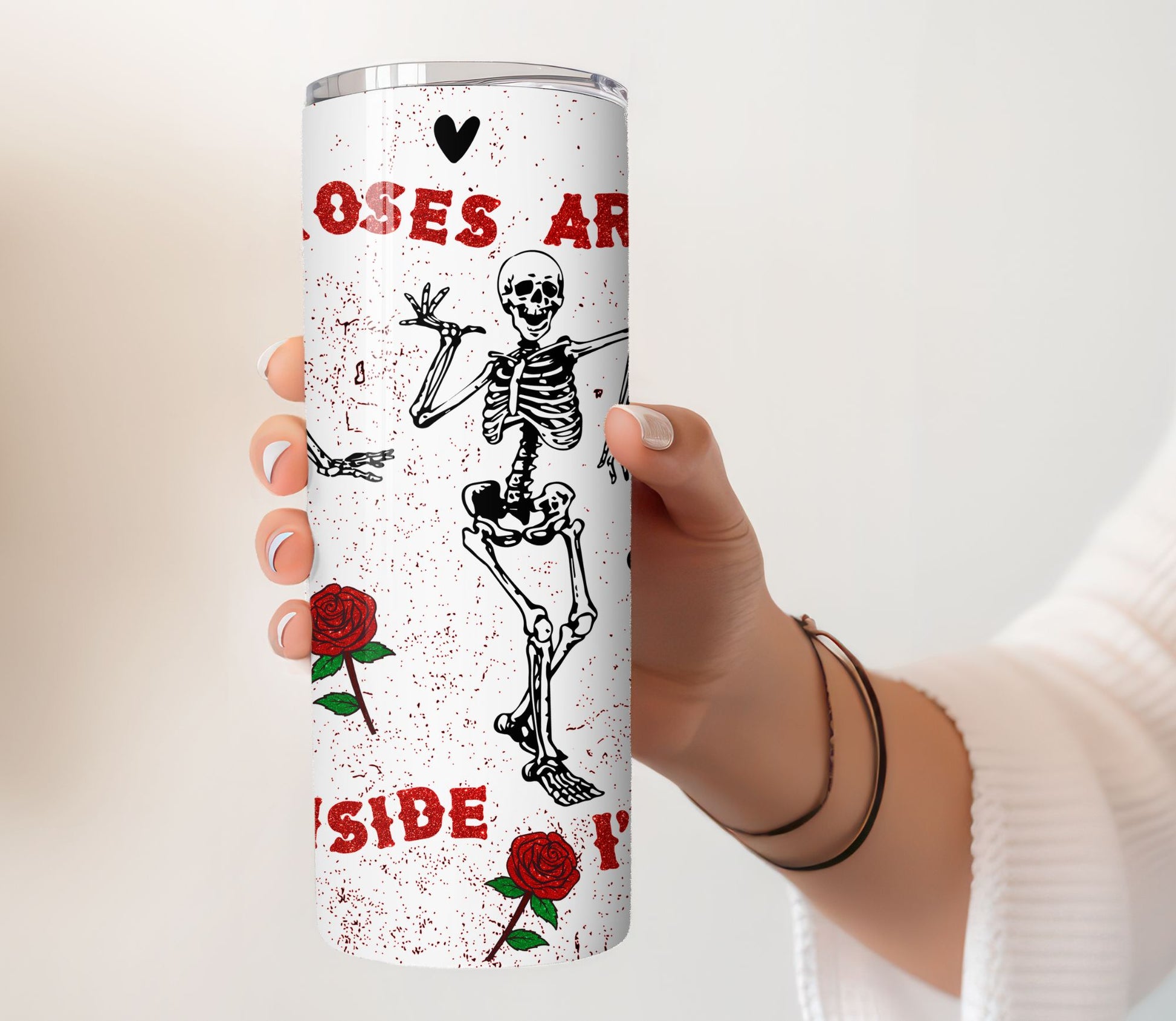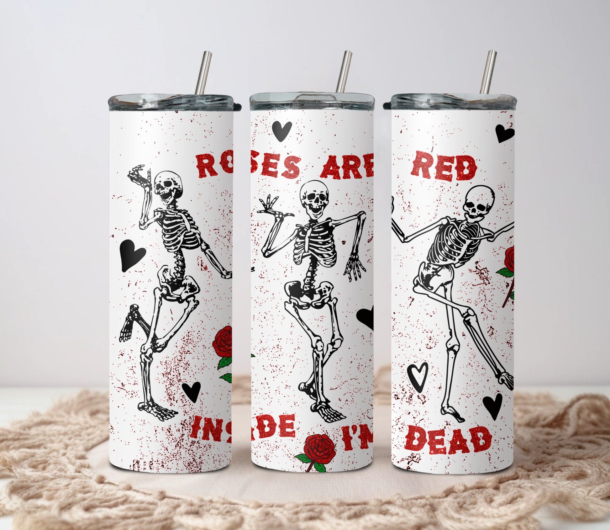 Embrace your dark side with the Roses are Red Inside I'm Dead Tumbler. This tumbler features a playful design with the phrase "roses are red Inside I'm Dead", bringing a touch of humor to your daily routine. Keep your drinks cold and your spirits high with this quirky tumbler."