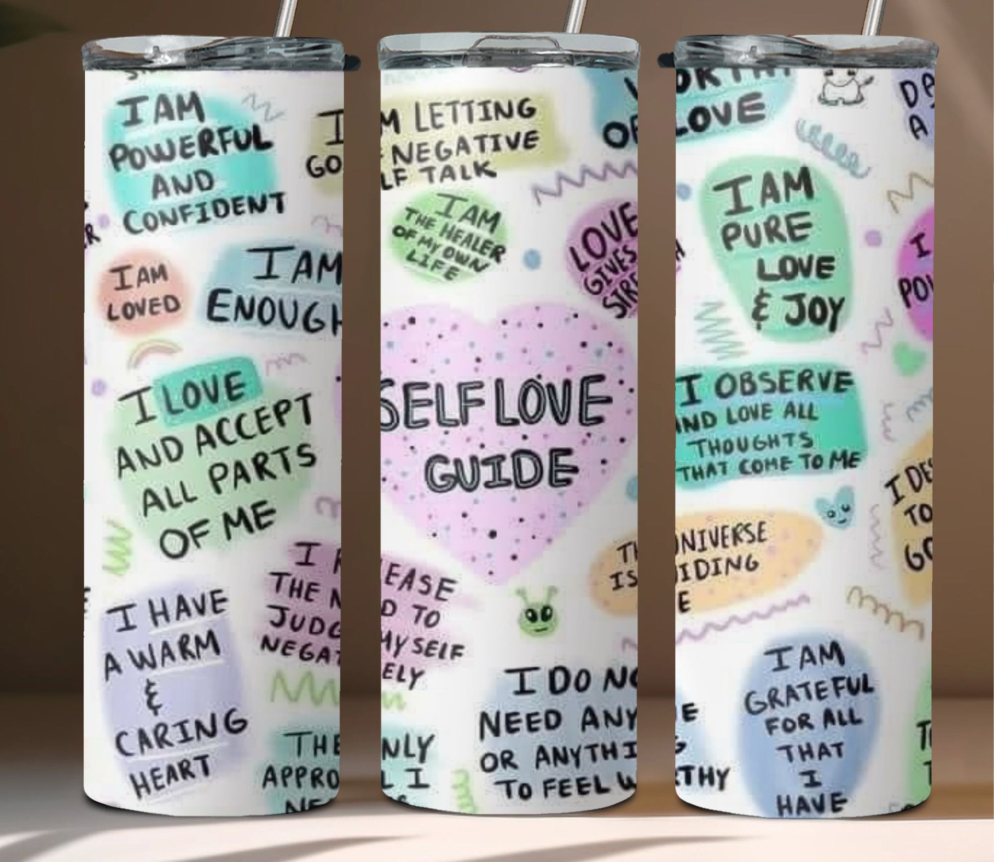 Stay hydrated while filling your cup with self-care with our Self Love Guide stainless steel tumbler. This 24-ounce, double wall tumbler is perfect for sipping your favorite drinks and gaining an understanding of self-care. Refill your tumbler and your self-care!